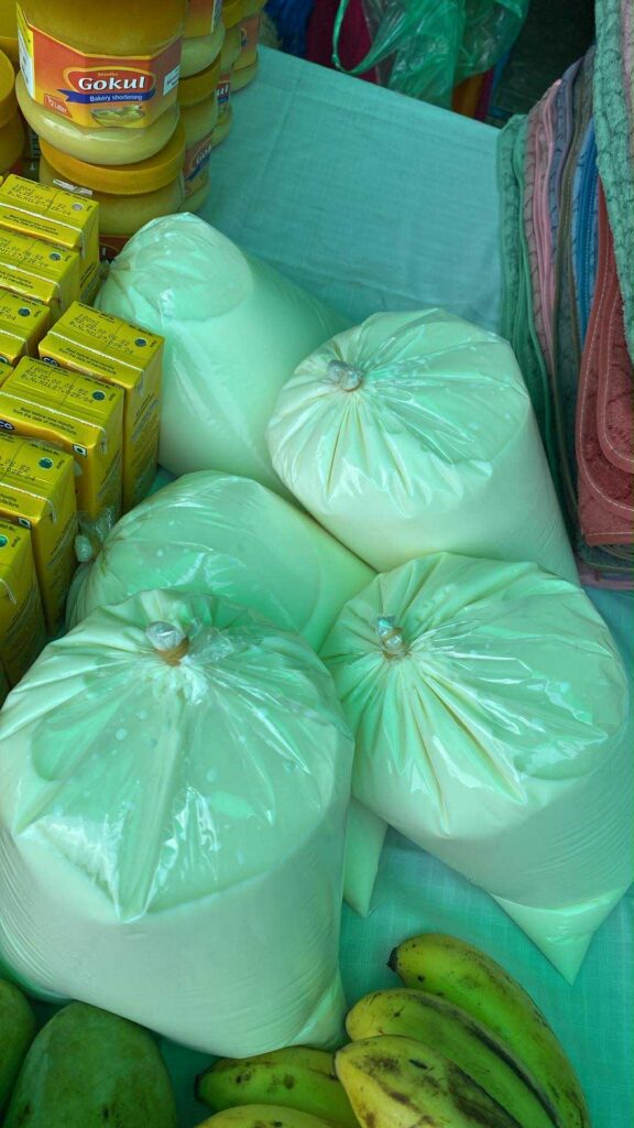1.お米 2.お水(ジュース) 3.果物 4.布 5.ミルク 6.ギー 7.塩 8.油 9.黒砂糖 10.野菜ポテト等です。