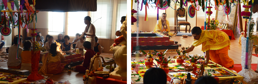 神は光ですが、インドの儀では神の光が姿を持って、私達に近づいて下さり、私達に直に恩恵を授けて下さります。神様と触れ合い一緒に喜びで融和する、とてもパワフルで楽しいお祭りです。